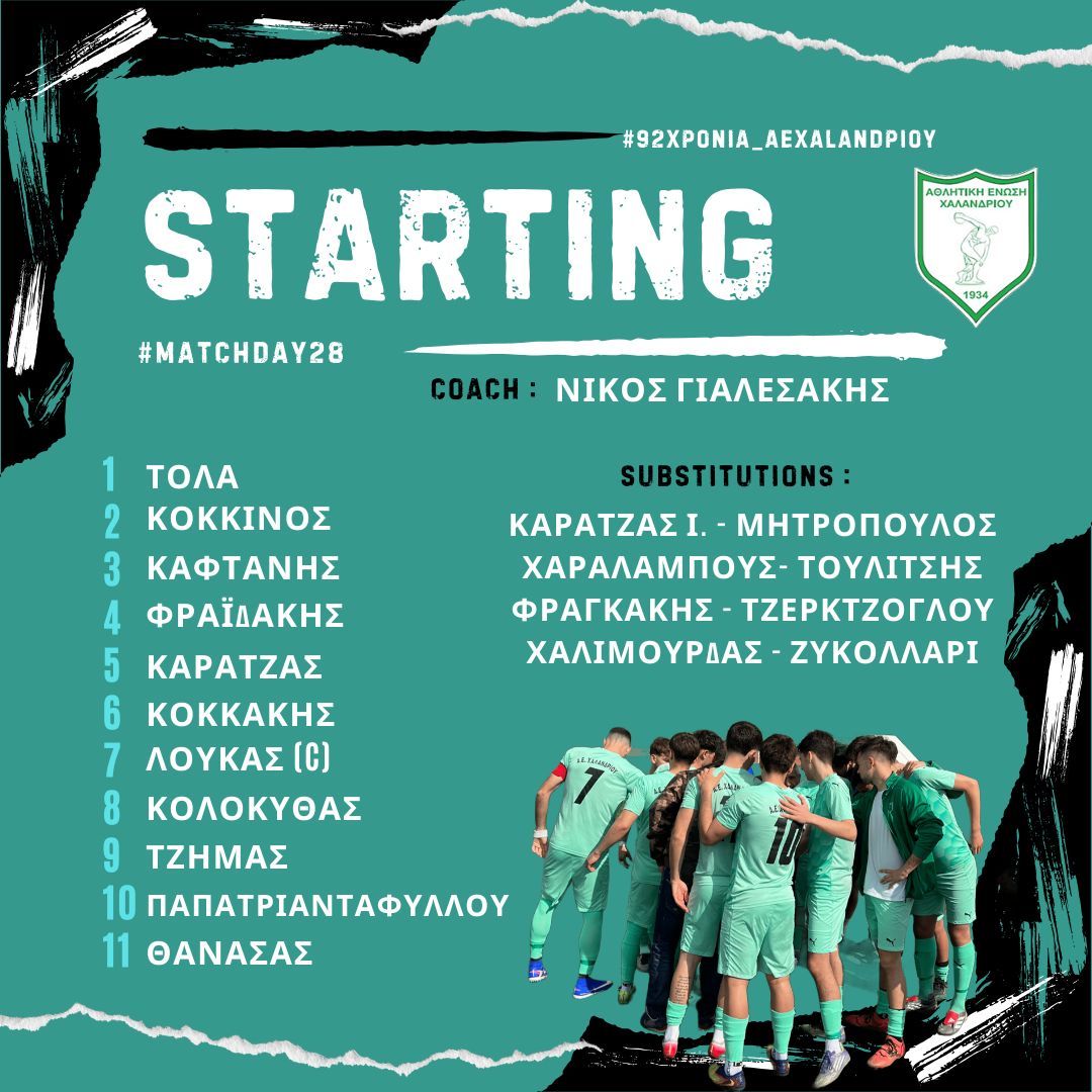 ΑΕ Χαλανδρίου-Νίκος Γιαλεσάκης: Αντώνιο Τόλα, Γρηγόρης Κόκκινος (83’ Γιάννης Μητρόπουλος), Σταυρίλειος Καφτάνης, Νίκος Φραϊδάκης, Κωνσταντίνος Καρατζάς, Πέτρος Κοκκάκης, Νίκος Λουκάς, Αντώνης Κολοκυθάς (73’ Ρίζος Τζερκτζόγλου), Νίκος Τζήμας, Μανώλης Παπατριανταφύλλου, Παναγιώτης Θανασάς (78’ Άγγελος Ζυκολλάρι)
