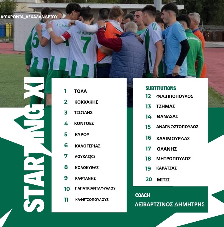 ΑΕ Χαλανδρίου – Δημήτρης Λειβαρτζινός: Αντώνιο Τόλα, Πέτρος Κοκκάκης (89’ Μάριος Ολάνης), Πάρης Καφετζόπουλος, Πέτρος Φιλιππόπουλος, Νίκος Κύρου, Γιώργος Καλογερίας (82’ Νίκος Τσιώλης), Νίκος Λουκάς, Αντώνης Κολοκυθάς (55’ Δημήτρης Χαλιμούρδας), Παναγιώτης Θανασάς, Μανώλης Παπατριανταφύλλου, Σταυρίλειος Καφτάνης (55’ Γιώργος Φραγκάκης)